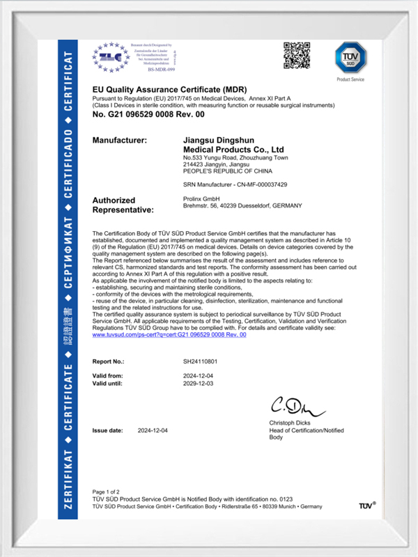 Dingshun Medical houdt zich eerst aan het principe van kwaliteit en realiseert een volledig procesbeheer, van de selectie van grondstoffen tot de uiteindelijke distributie. Het bedrijf zet zich ook in om nieuwe technologie op de mondiale gezondheidszorgmarkt te brengen. Om een uitstekende wereldwijde leverancier van medische verbruiksartikelen te worden, onderzoekt Dingshun duurzamere en milieuvriendelijkere oplossingen.